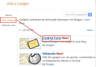 For those of you who want to install this widget contact form is very easy. You just add the widget as usual. Then select more gadgets.