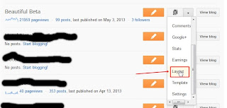 1. Login to your Blogger account 2. Click on the dropdown menu and then select the layout
